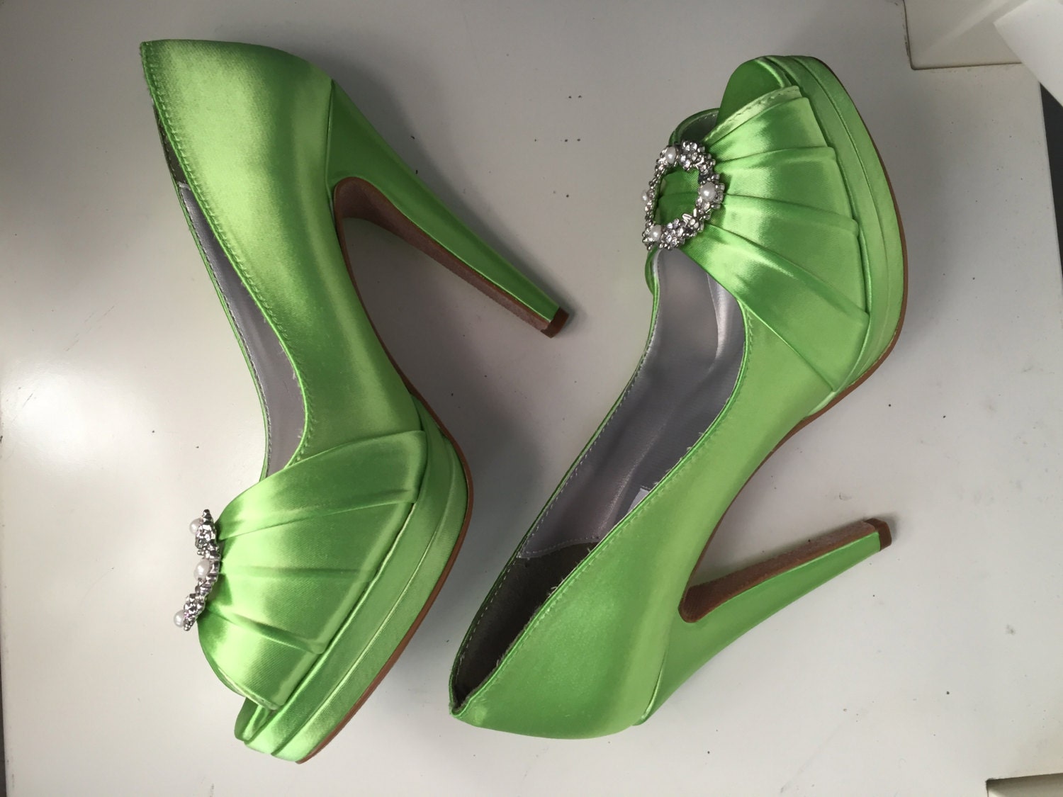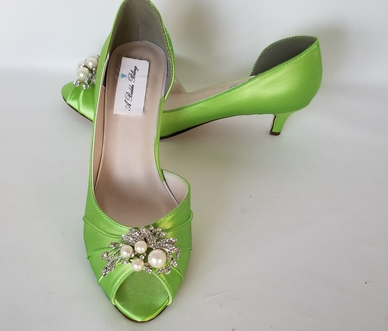 Lime Green Wedding Shoes With Crystal And Pearl Cascade Design Etsy