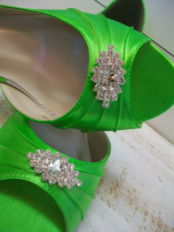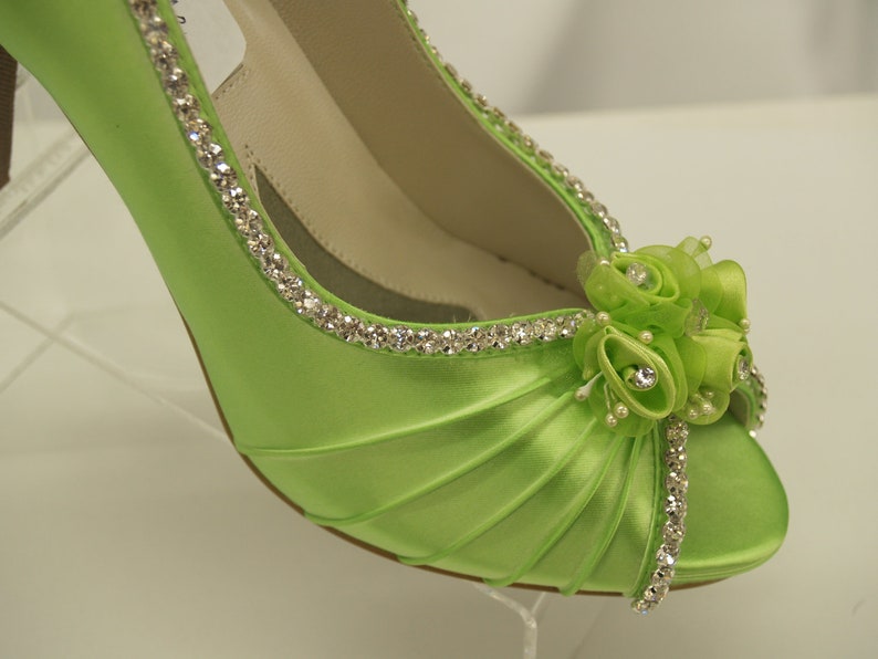 Neon Green Wedding Shoes Crystals And Flowers Peep Toe Pump Etsy