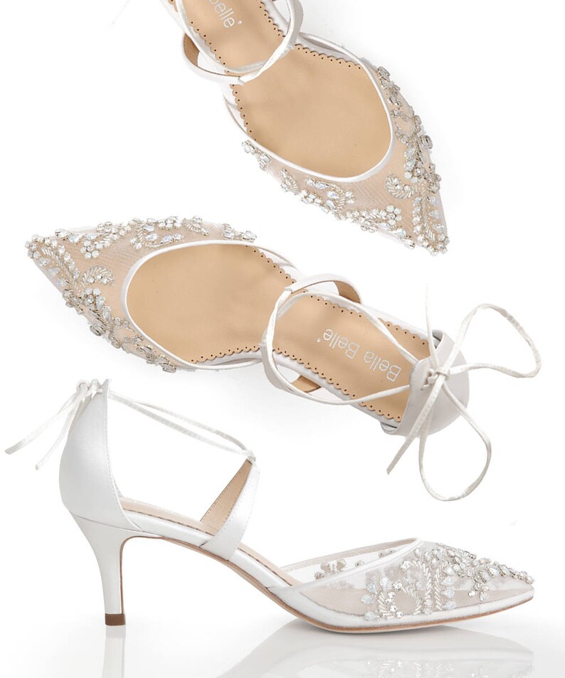 Low Heel Comfortable Crystal Embellished And Beaded Wedding Etsy