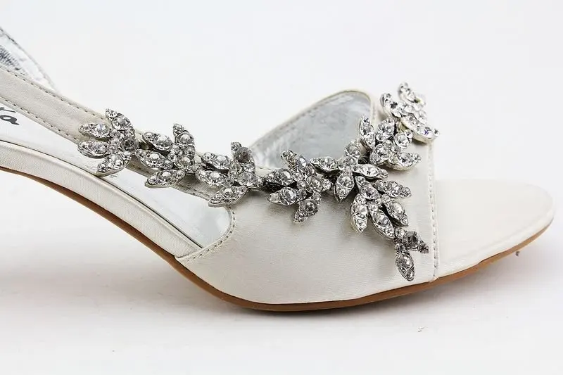 Women S Satin Kitten Heel Peep Toe Sandals White Wedding Shoes With