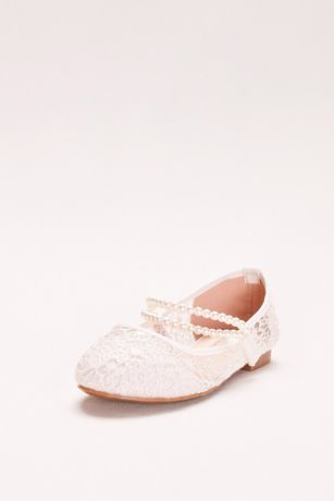Girls Lace Mary Janes With Pearl Strap David S Bridal