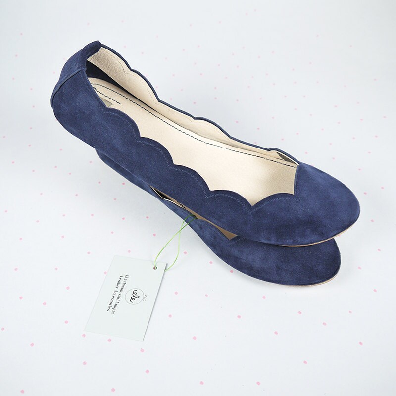 Scalloped Ballet Flats Shoes Handmade Shoes Blue Flats Gift Etsy