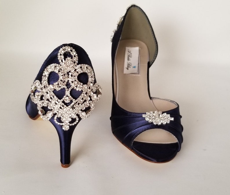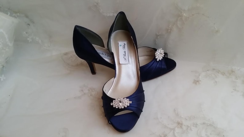 Navy Blue Wedding Shoes Crystal Brooch Navy Blue Bridal Shoes Etsy