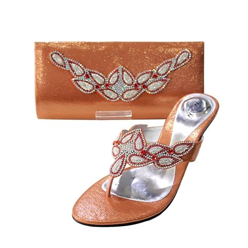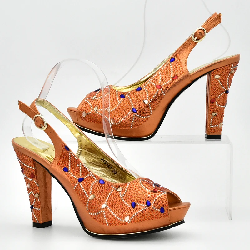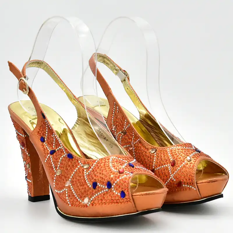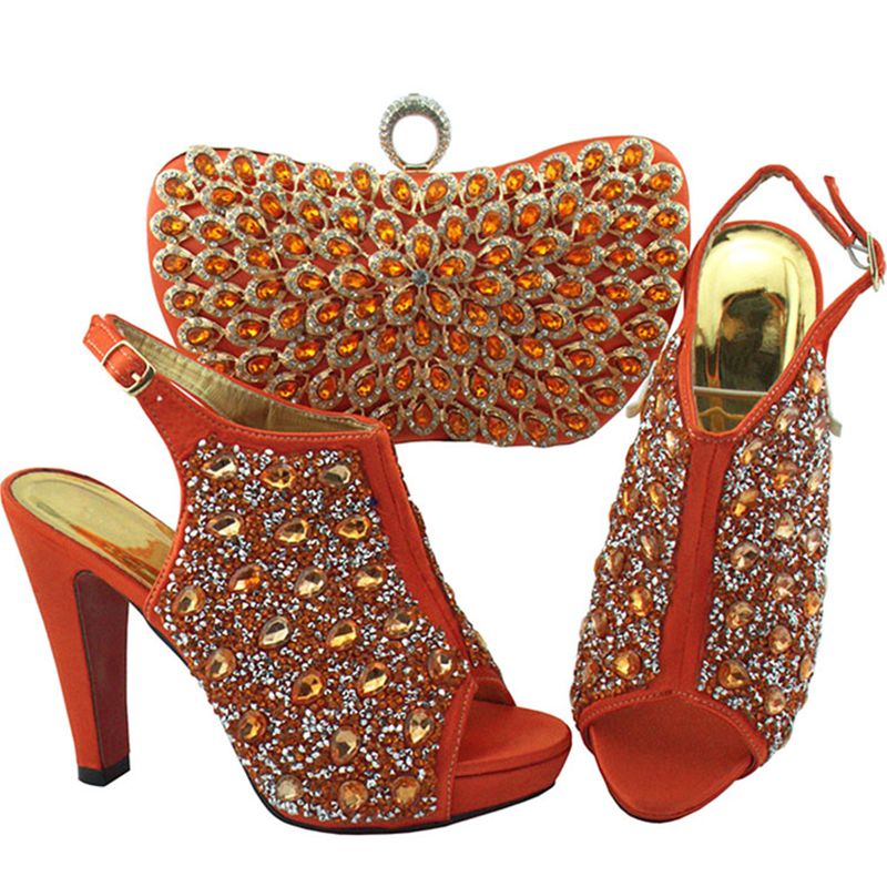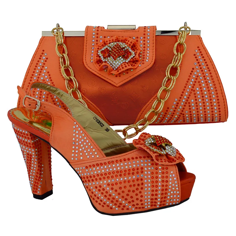 Orange Color Rhinestone Shoes And Bags To Match African Women