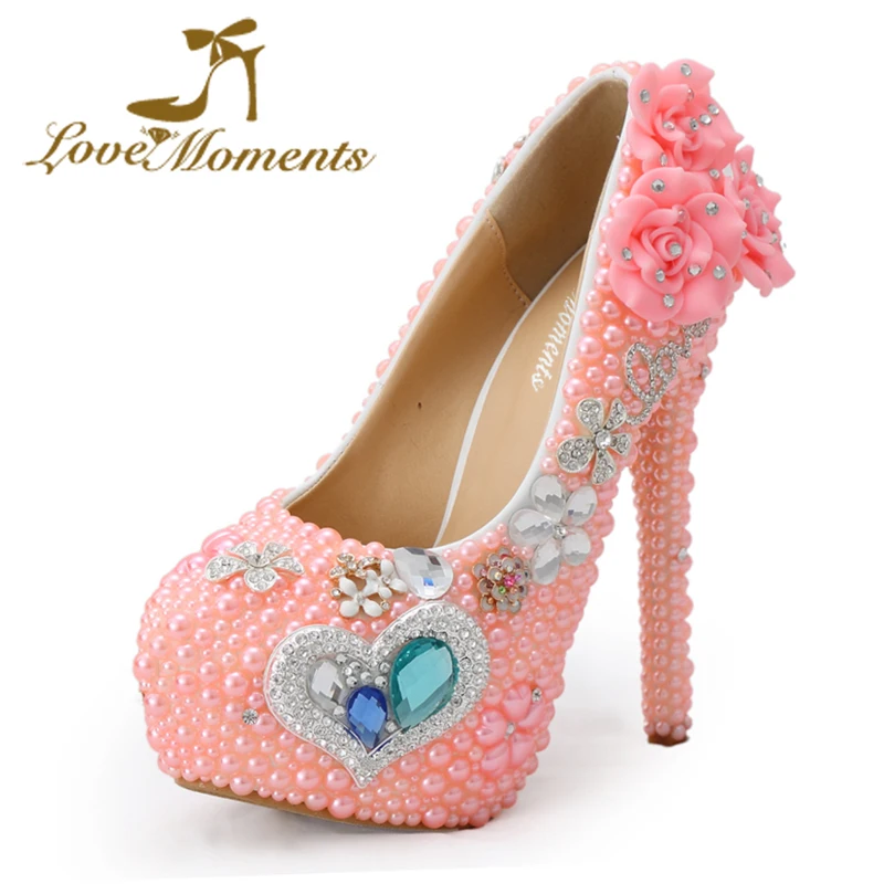 Love Moments Handmade High Heels Pink Red White Wedding Shoes Bride
