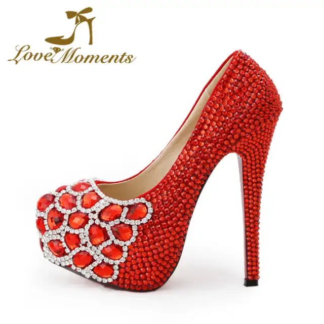 Love Moments Women Shoes Red Stone High Heel Shoes Crystal Wedding