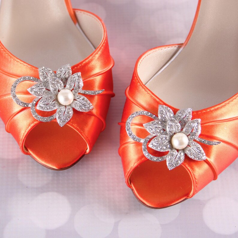Wedding Shoes Orange Peeptoe Wedding Shoes With Silver Rhinestone