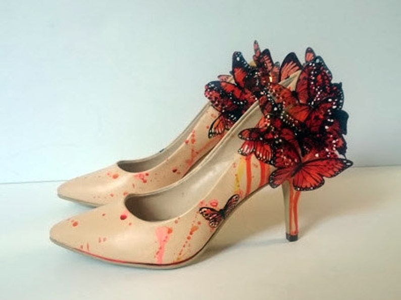 Orange 3d Butterfly High Heels Wedding Shoes Uk Size 6 5 Us Etsy