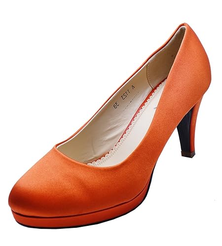 Heelzsohigh Ladies Orange Satin Slip On Smart Work Wedding Party