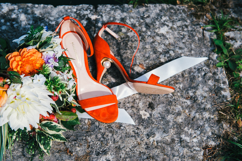 The Bride Wore Orange Wedding Shoes To Match The Theme Of Her Day At