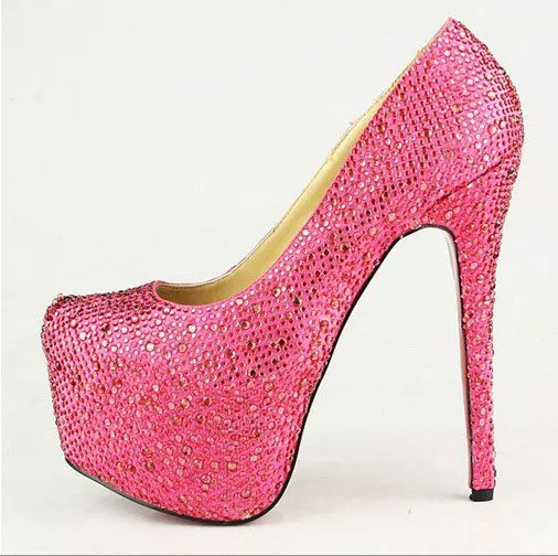 Glitter Rhinestone Pink Wedding Shoes Women High Heels 2015 2016