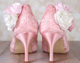 Lace White Pink Pump Wedding Bridal High Heels Shoes For Sale In