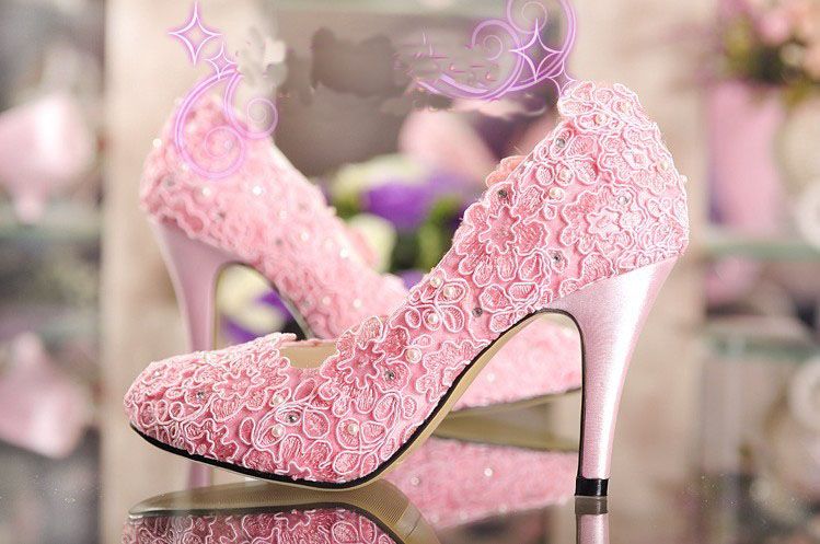Pink New Diamond Shoes High Heels Pearl Lace Shoes New Bridesmaid