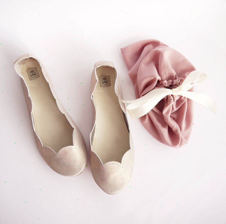 Metallic Rose Gold Ballet Flats Bridal Wedding Shoes Etsy