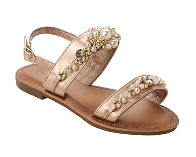 Shop 4 Shoes Girls Rose Gold Diamante Bridesmaid Wedding Party Flat