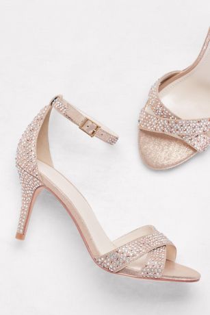 Amazon Com David S Bridal Crystal Strap Metallic Block Heel