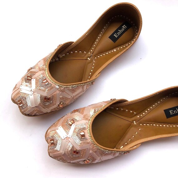 The Sparkling Hive Rose Gold Womens Flat Shoes With Rhinestones Pink Shoes Wedding Shoes Handmade Indian Designer Shoes
