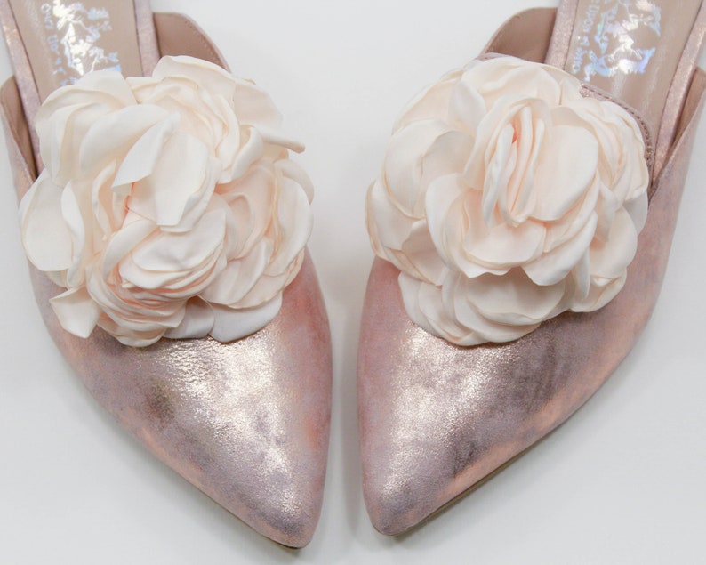 Rose Gold Wedding Mules Flat Shoes Bridal Shoes Women Shoes Mules Rose Gold Bows Women Shoes Bows Leather Handmade Flats Bows Casual Shoes