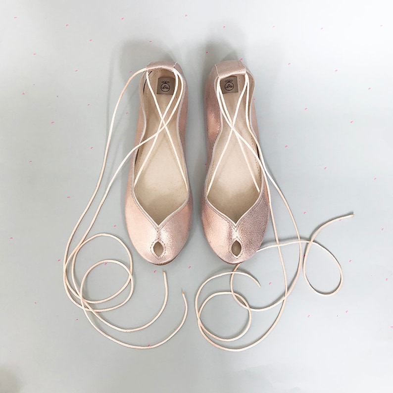 Metallic Rose Gold Ballet Flats Bridal Wedding Shoes Etsy