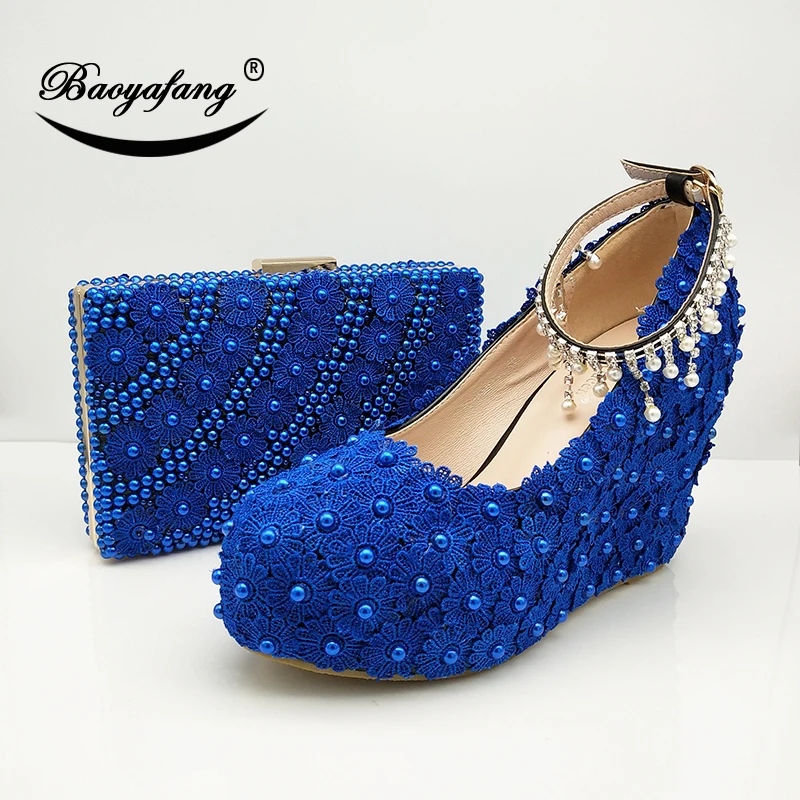 Baoyafang New Wedges Royal Blue Lace Up Flower Wedding Shoes And