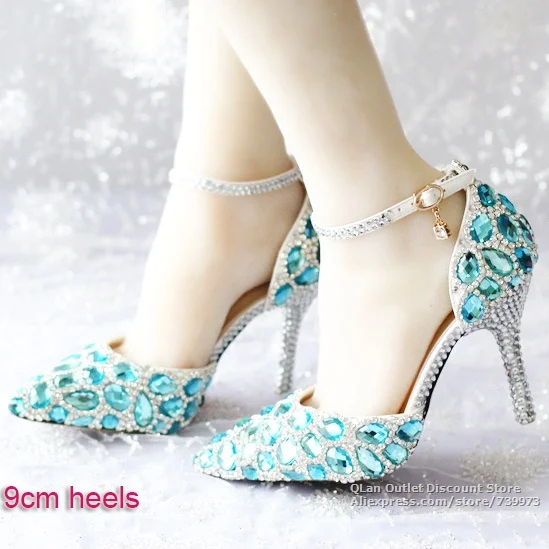 Royal Blue Rhinestone Wedding Shoes 9cm Pointed Toe Summer Sandals