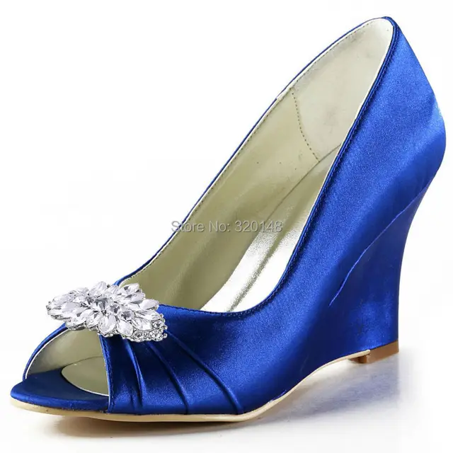 Peep Toe Satin Royal Blue High Wedge Wedding Prom Shoes Online