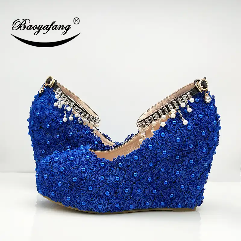 Detail Feedback Questions About Baoyafang New Wedges Royal Blue Lace