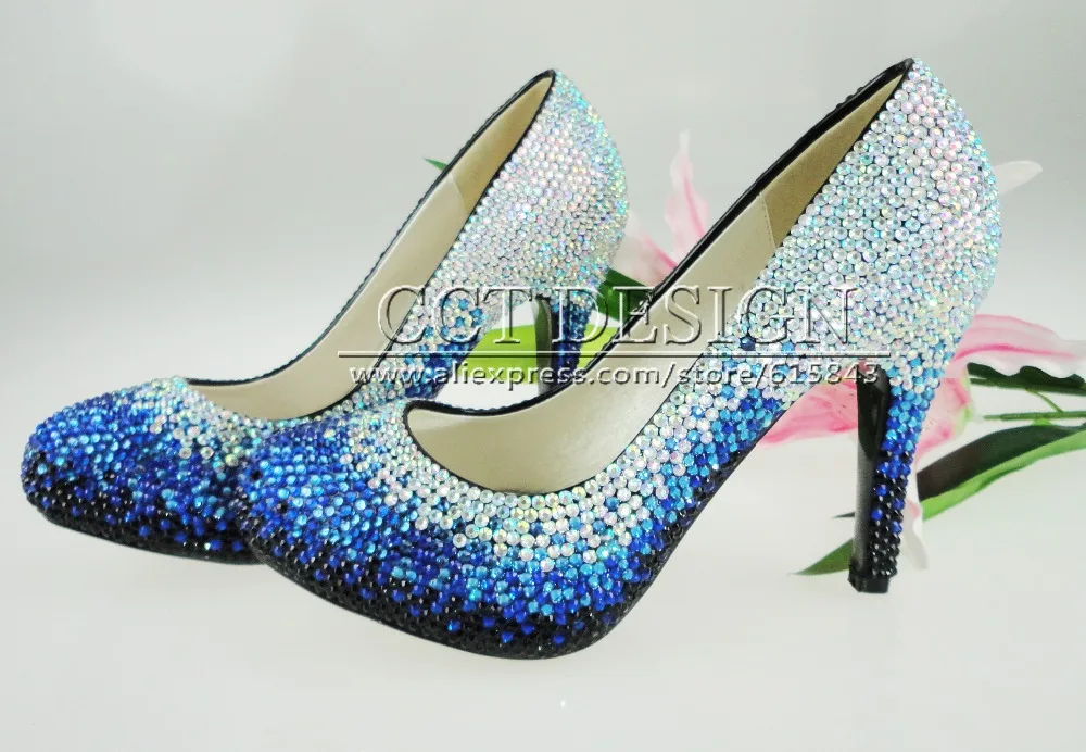Rhinestone Royal Blue 2016 Real Image Bridal Wedding Shoes Crystal