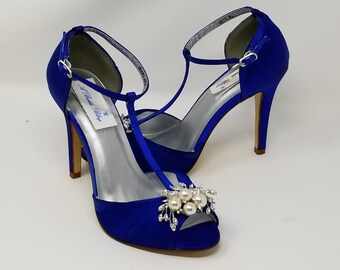 Royal Blue Wedding Shoes And Heels Deer Pearl Flowers