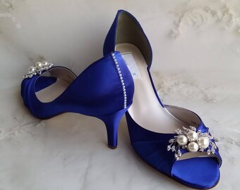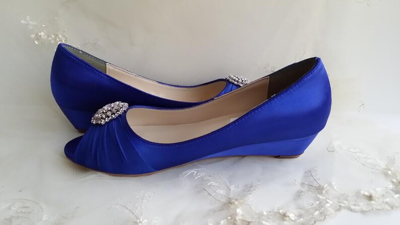 Blue Wedge Wedding Shoes Pick Your Color Shown In Royal Etsy