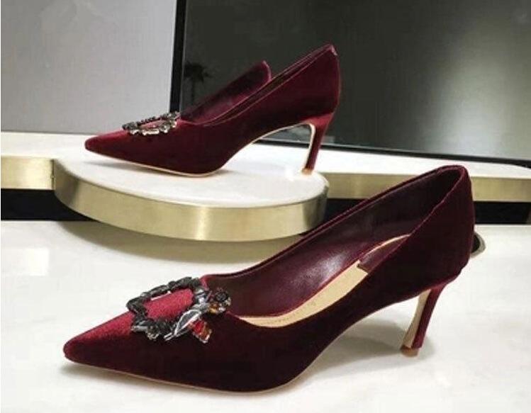 Spring Fashion Velvet High Heels Elegant Ladies Party Wedding Shoes