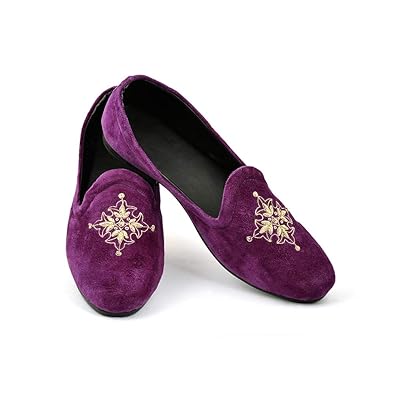Amazon Com Lalhaveli Velvet Wedding Shoes Hand Embroidered Purple