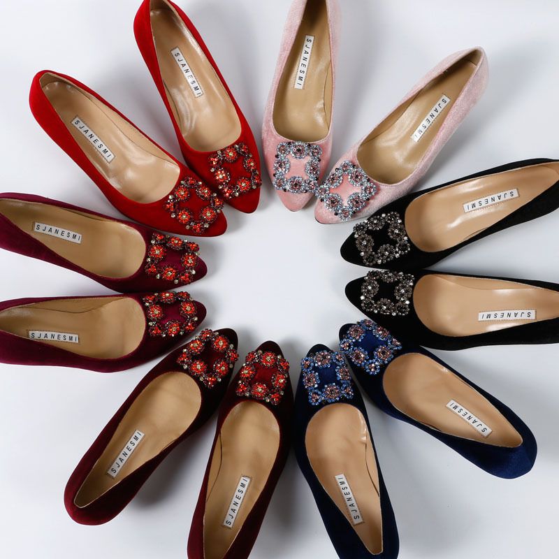 Luxury Velvet Heels Women 2019 Retro Wedding Shoes Rhinestone