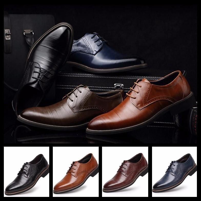 2018 Fashion Brown Black Mens Wedding Shoes Ponited Toes Grooms