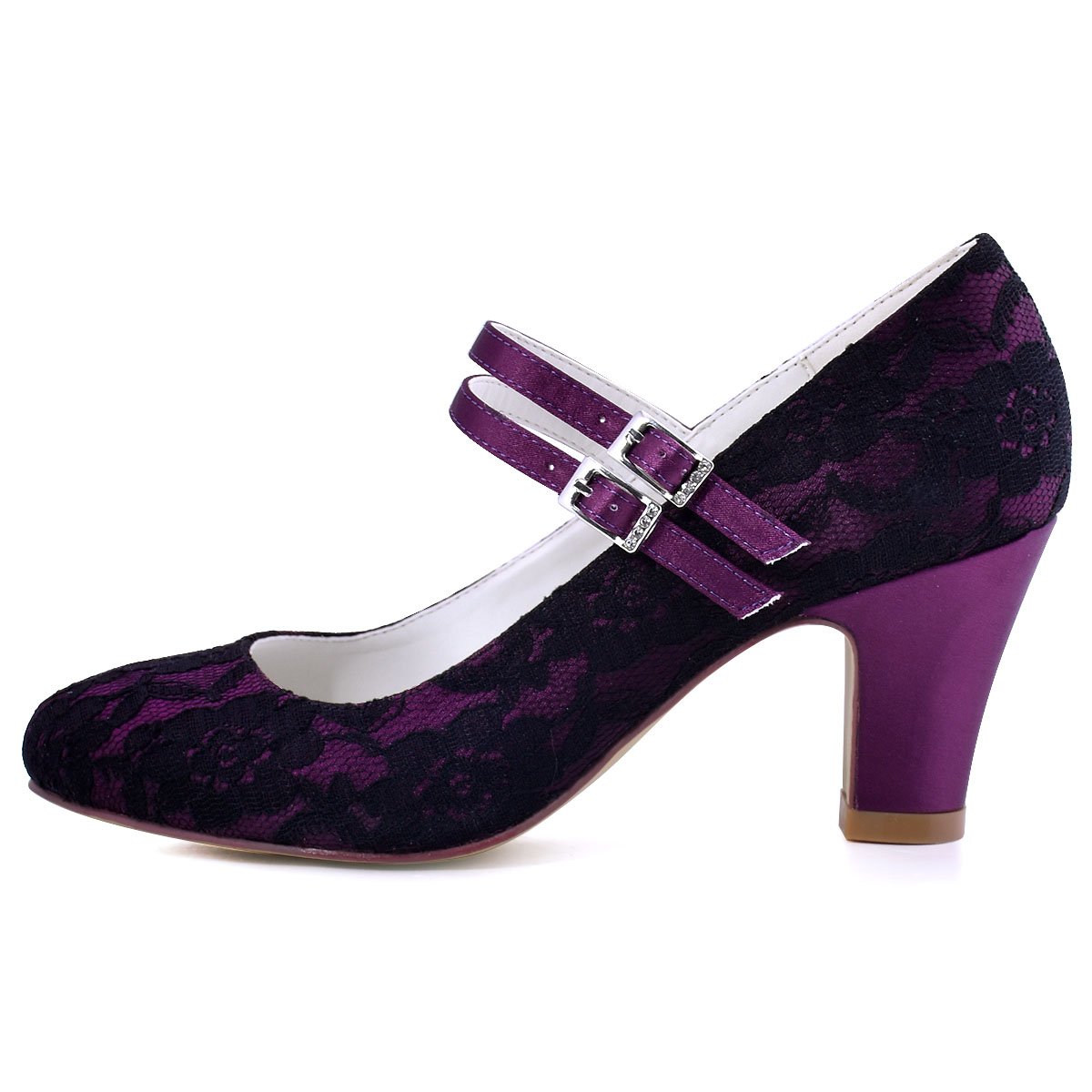 Elegantpark Women Mary Jane Pumps Closed Toe Mid Heel Lace Wedding