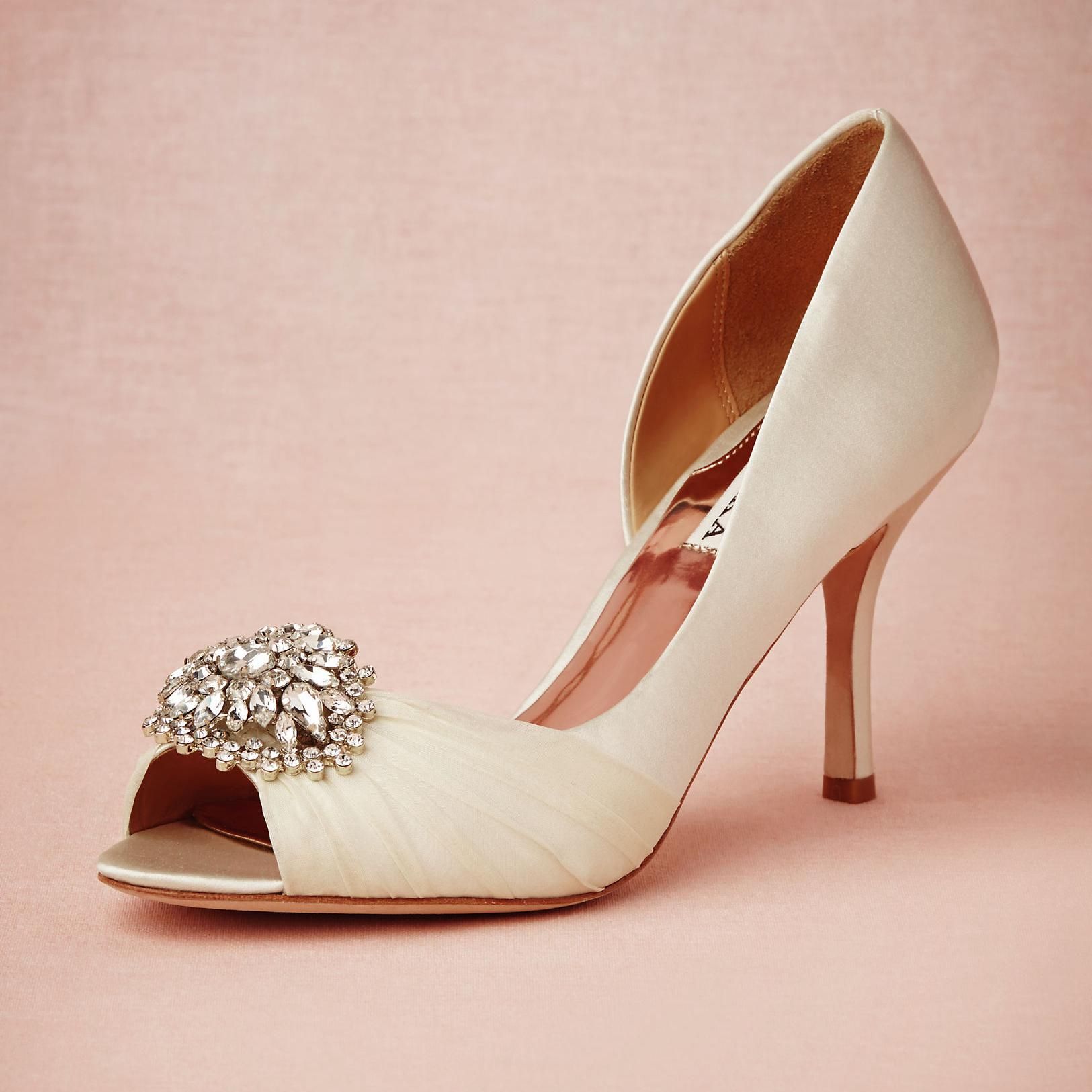Mid Heel Satin Peep Toe White Prom Wedding Shoes With Brooch Online