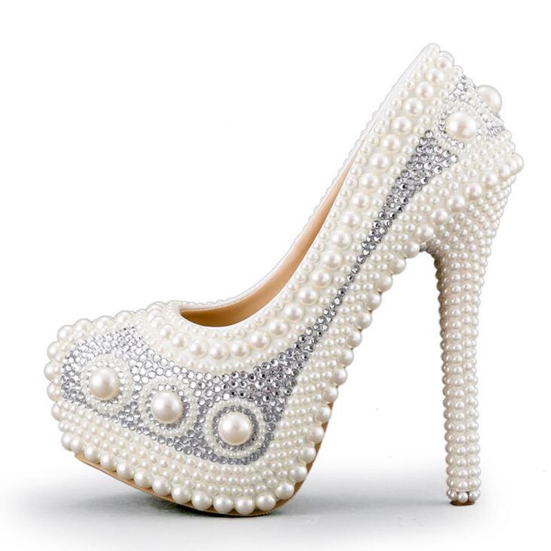 Luxurious Pearl Wedding Shoes White Formal Dress Shoes Marriage Bride Shoes High Heel Platform Performance Shoes Prom Pumps