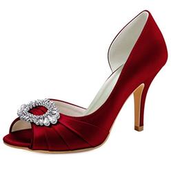 Peep Toe Satin Crystal Burgundy Bridesmaid Evening Prom Wedding