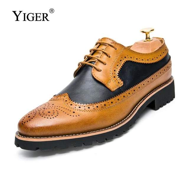 Yiger New Men Brogue Shoes Bullock Men Dress Shoes Man Wedding Shoes