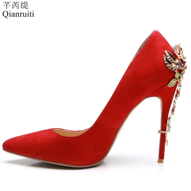 New Arrival Red Color Flock Women Wedding Shoes Bride 10cm 12cm 14cm