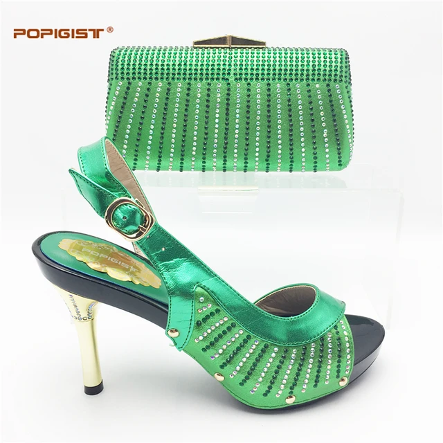 Wedding Green Color Shoes And Bag Italian Shoes With Matching Bags