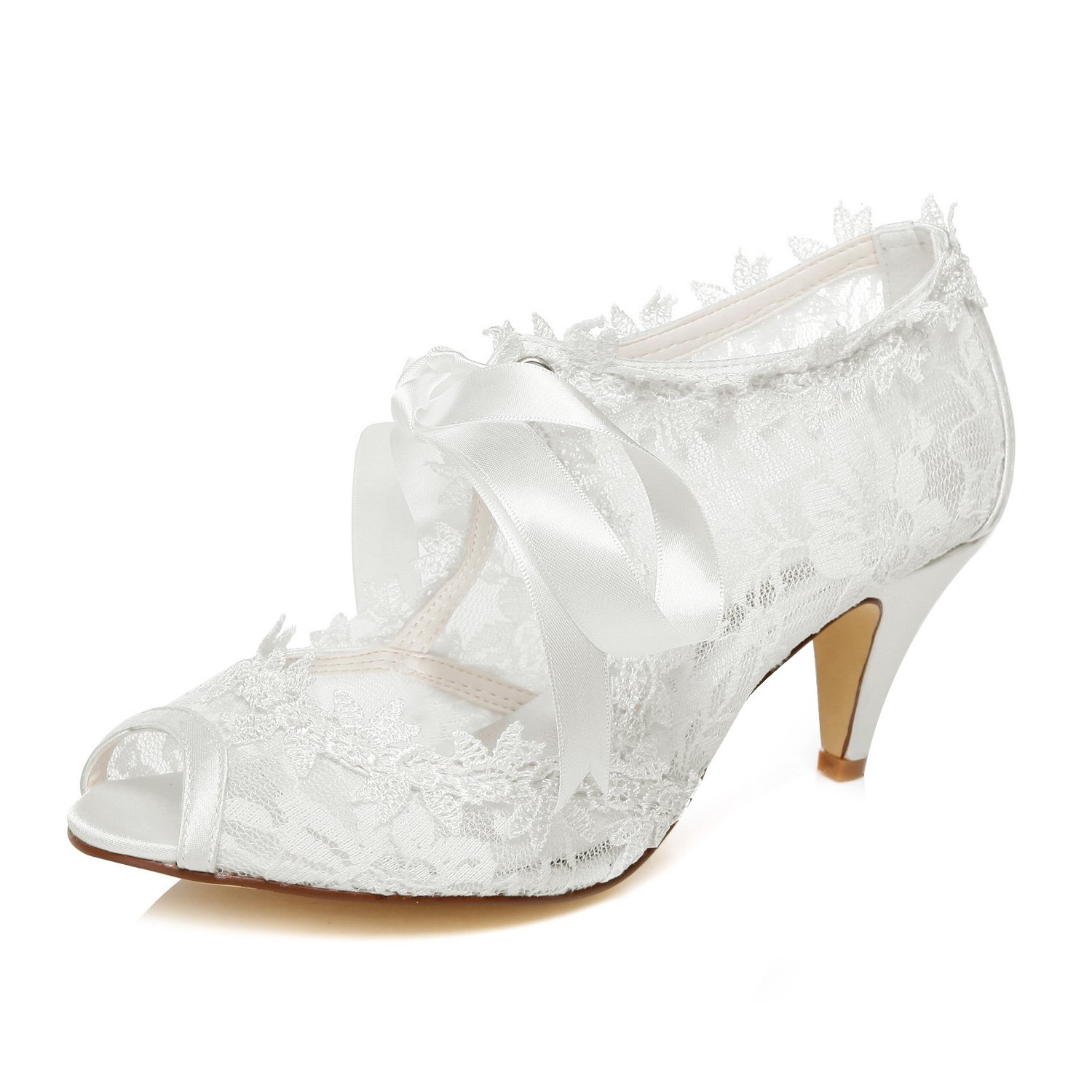 Jiajia Women S Bridal Shoes 5949419 Peep Toe Cone Heel Lace Satin