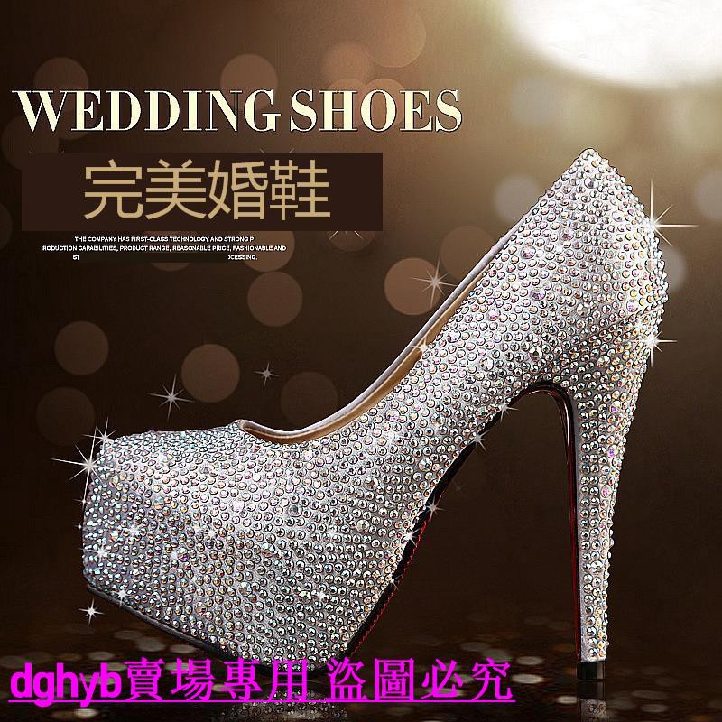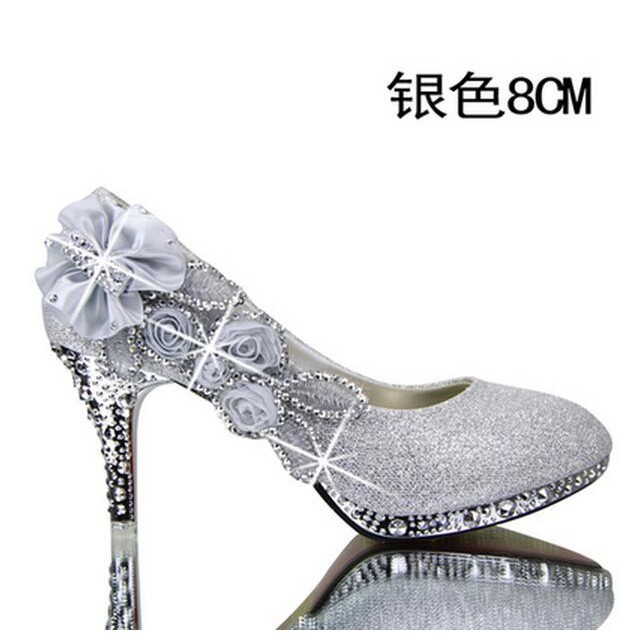 Sexy Diamond Pearl Sequined Silver Tip 5cm High Heels Wedding Bride