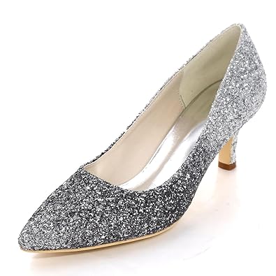 Mid Heel Kitten Heels Comfortable Wedding Shoes Summer Silver Prom