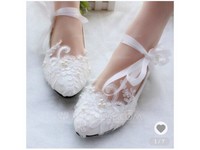Attractive Flat Wedding Shoe Etsy Lace Flower Lady White Ankle Trip