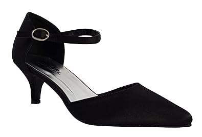 0053 New Ladies Ankle Strap Low Kitten Heel Pointed Satin Lace