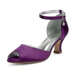 Close Toe Kitten Heel Purple Satin With Bowknot Wedding Shoes