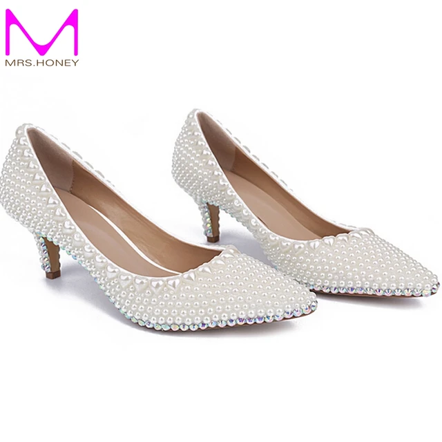 Kitten Heel Ivory Pearl Wedding Shoes In 2019 Products Wedding