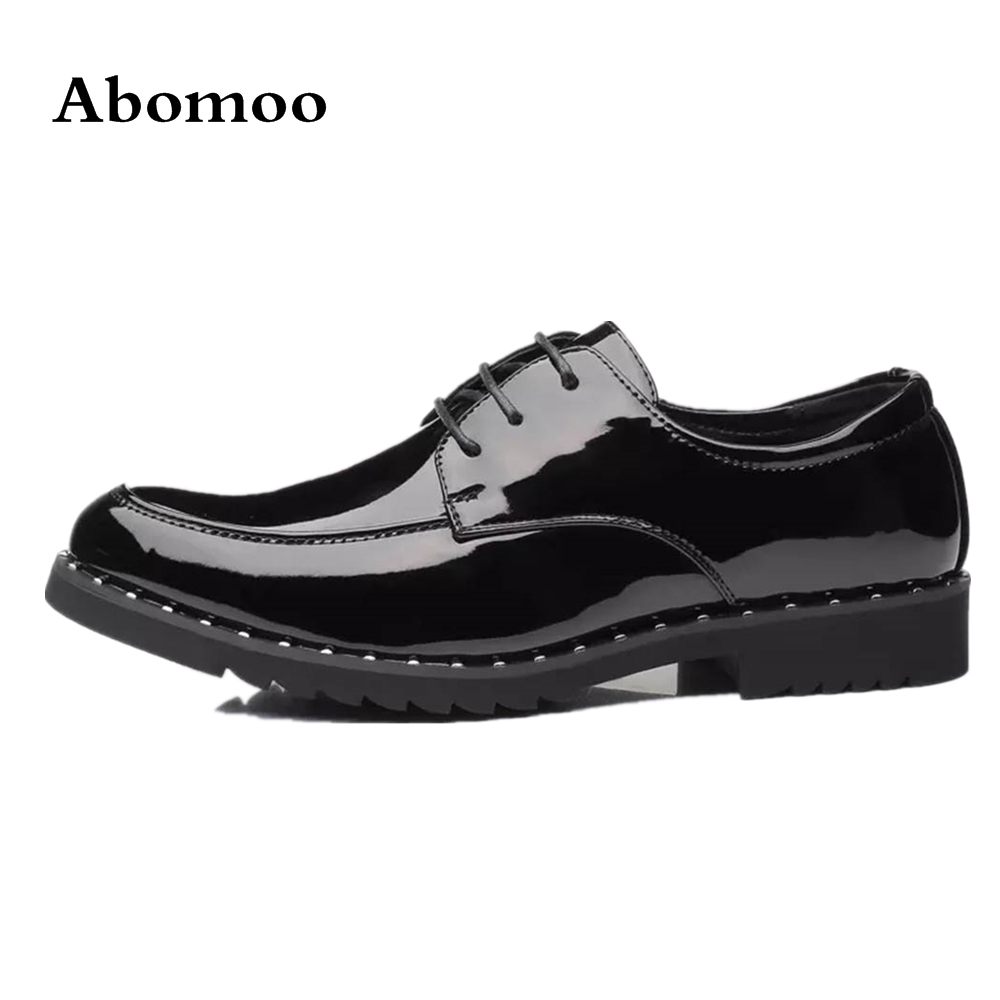 Patent Leather Men Fashion Formal Shoes Lace Up Male Wedding Shoes