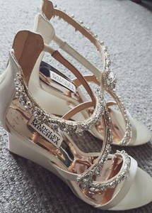 Badgley Mischka Bennet Embellished Wedge Sandal 8 5 Ivory Satin